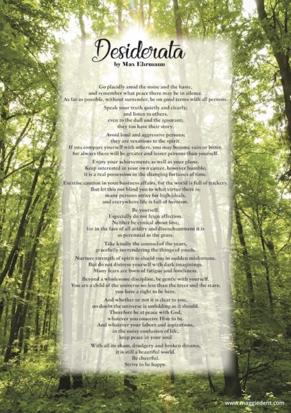 When I shared a post about Max Ehrmann’s beautiful poem Desiderata, we found so many people ...