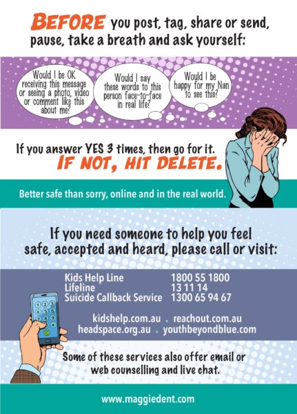 Online behaviour is very different than IRL behaviour. Some of the nastiest and cruellest things that are shared online would not happen face-to-face. Given the intellectual immaturity of our kids especially under 16, this online nasty behaviour, which is often impulsive and not thought through, can have huge impacts on others. It tends to normalise nastiness and that is the opposite of the human connectedness that we are biologically wired to survive with.