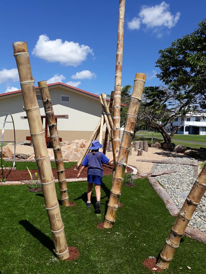 I get so totally chuffed when a school community gets inspired by me to build a nature play space for their students! Even better when that inspiration becomes reality and yesterday I visited St John’s School in Silkwood near Innisfail. Staff worked with students and parents to bring aspects that students wanted…and they searched my Nature Play Gallery for ideas! https://www.maggiedent.com/nature-play/