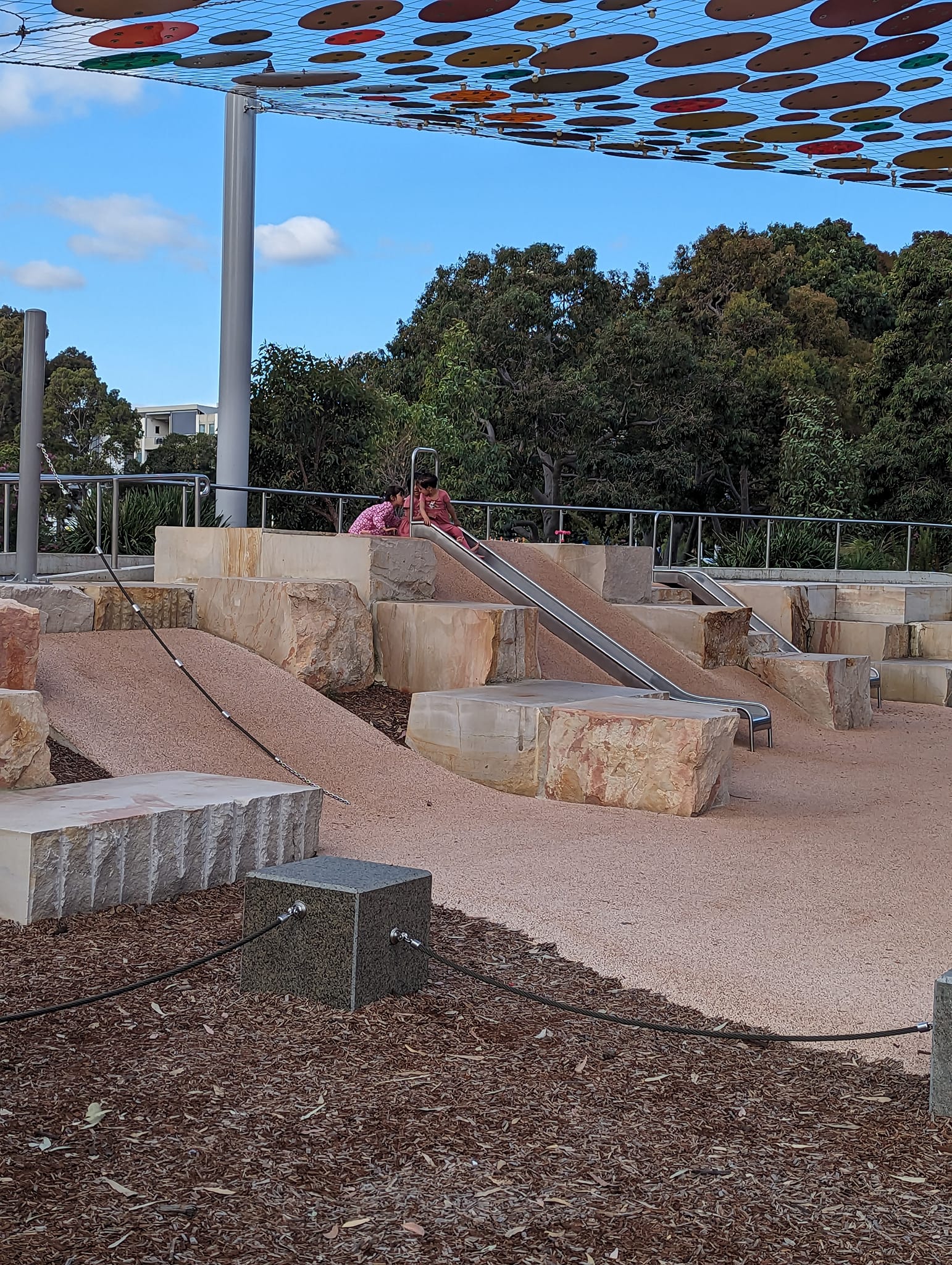Maggie says – What an absolute delight to discover this fabulous playspace in Perth…close to CBD. So much to love – all ages, with a deep acknowledgement to the flora …